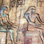 En la mano derecha lleva el anj y en la izquierda sostiene su cetro.